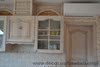 Фасады, столешницы - массив ясеня, корпуса - ДСП шпонированное ясенем. Отделка - выбеливание с патиной, лакировка.